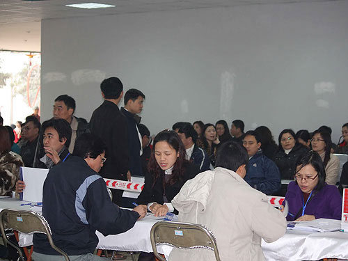 Khách hàng nộp hồ sơ mua nhà tại dự án Kiến Hưng, Hà Nội.